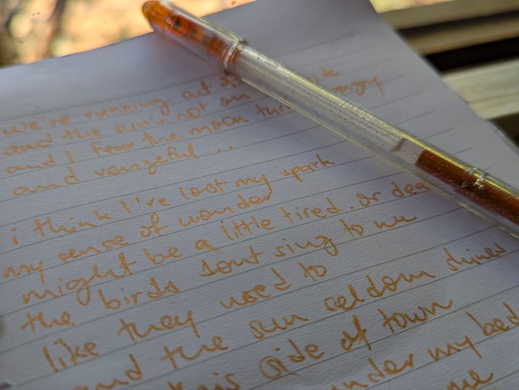 we’re running out of earth and the sun’s not on our side and i fear the moon turned angry and vengeful ∗ ∗ ∗ i think I’ve lost my spark my sense of wonder might be a little tired. or dead. the birds don’t sing to me like they used to and the sun seldom